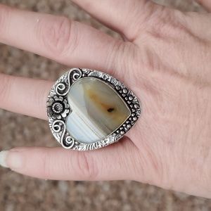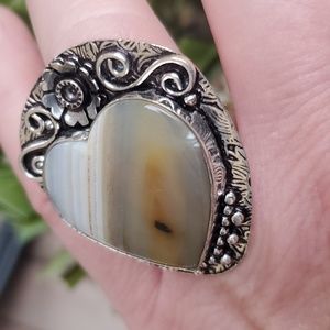 Brand New Handmade Heart Shaped Botswana Agate Silver Statement Ring.