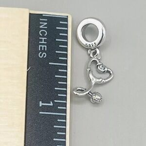 Sterling Silver S925 Heart Stethoscope Dangle Charm