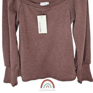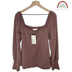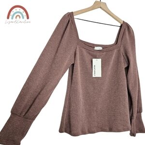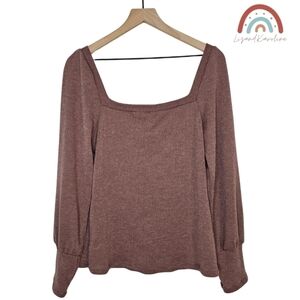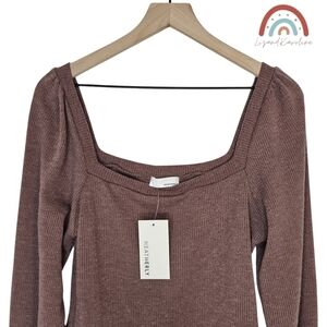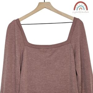 New! Heatherly Ribbed Knit Square Neck Sweater Top