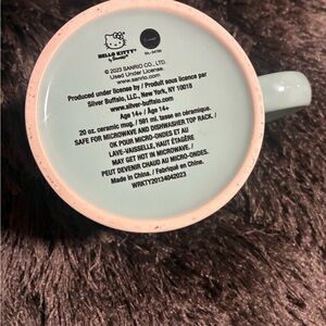 Cute Hello Kitty mug with colorful bow design. Features a cheerful rainbow and 'HELLO!' text. Perfect for brightening your drink time.