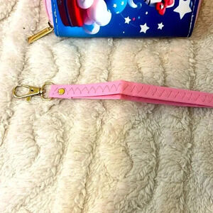 Hello Kitty Wallet. It zips all the away around. The picture is same on the front as the back. Comes with a pink wrist strap. Inside has places for your cards and money. The colors are vibrant. It is so incredibly adorable!!!! Thank you for looking 👀