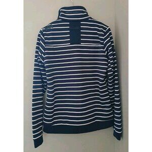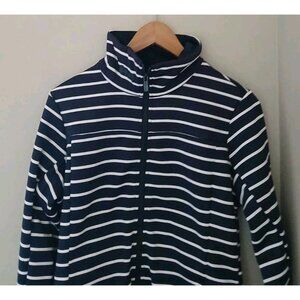New Helly Hansen Crew Fleece Jacket. Size Large. Blue and white stripes. Nautical, Sail, Marine. New with tags. No flaws noted. Measures approximately 20" pit to pit, 26" shoulder to hem.