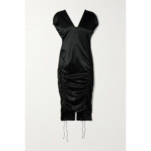 Helmut Lang's midi dress is fitted with slim ties through the bodice that can be adjusted to create figure-hugging ruching. It's cut from lighweight silk-blend satin with a V-neckline and cap sleeves. Wear yours with strappy sandals and a tote. This is so sexy and gorgeous! I love it!