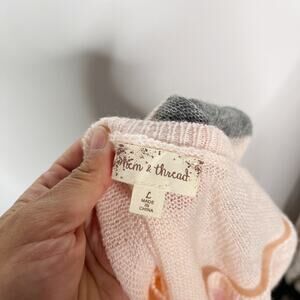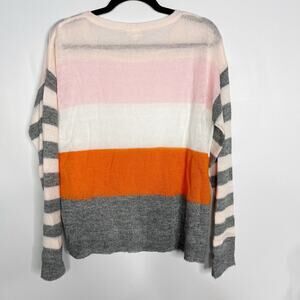 New Hem & Thread Large L Pink Orange Gray Striped Lightweight Sweater Crew Neck