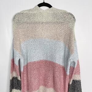 New Hem & Thread M Blue Pink Gray Colorblock Stripe Long Length Cardigan Sweater
