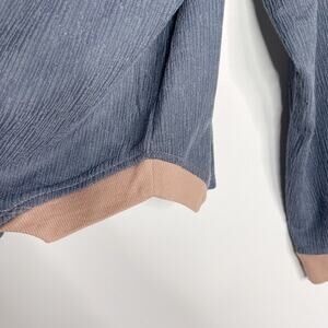 New Hem & Thread Medium M Blue Pink Denim Blue Textured Boxy Henley Long Sleeve