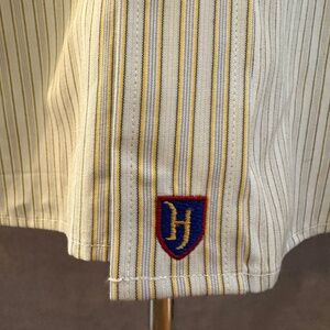 New Henry Jacobson Lg putty/ yellow stripe cotton hidden button down sport shirt