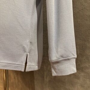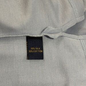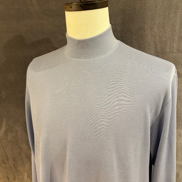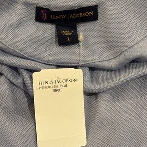 New Henry Jacobson, size Large, sky blue 70% silk, 30% cotton pique fully fashioned long-sleeved mock turtleneck shirt. With original item tag. Originally priced at $95.