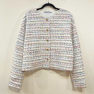 New Hill House Ames Tweed Drop-Shoulder Jacket White Multi XL $250