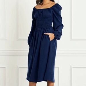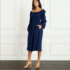 New Hill House Jasmine Nap Long Sleeve Navy Midi Dress NWT Small