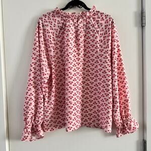 New Hill House Posy Pink Millie Top Mock Neck Floral Long Sleeve Sz XL