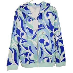 New Hill House womens Allie blue zip up kaleidoscope print hoodie size large