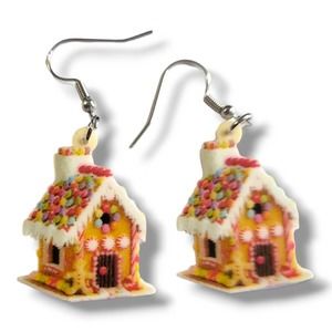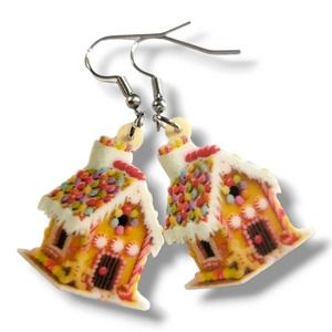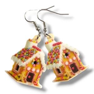 New Holiday Drop Dangle Acrylic Ginger Bread House Earrings