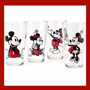 New Holiday Farmhouse Red & Black Mickey & Minnie Plaid 16-Oz. Glasses, Set of 4