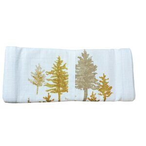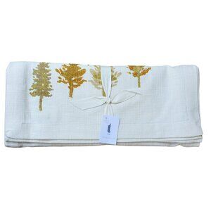 New Holiday Forest Table Runner Linen Christmas Gold Tree Glitter Tableau 14x72