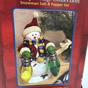 New Holiday Home Collection Snowman Magnetic Salt/pepper Shaker Set.
