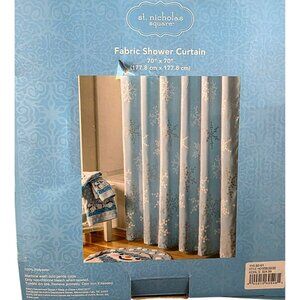 New Holiday Snowflake Fabric Shower Curtain Blue White Silver Dots Snow Winter