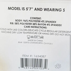 Rib, 58% polyester 38% rayon 4% spandex Questions? Leave a comment below!