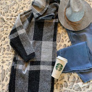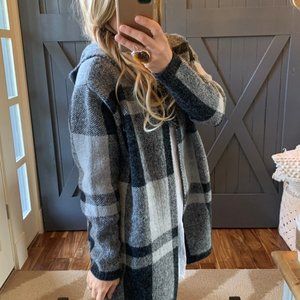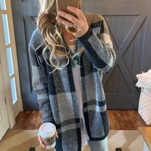 New Plaid Black Grey Hooded Cardigan Sweater Coat Shacket
