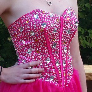 New 🔥 Hot Pink Beaded Strapless Prom Homecoming