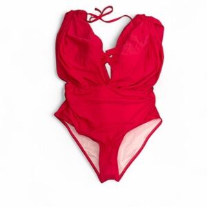 Brand new with tags Cupshe women’s two-piece swimsuit in a stunning hot pink shade. Features a plunging neckline with ruched wrap detailing, supportive bikini top, and matching high-waist bottoms for a flattering fit. Perfect for tropical vacations, beach days, and pool parties. Size XL. Smoke-free home, ships fast.