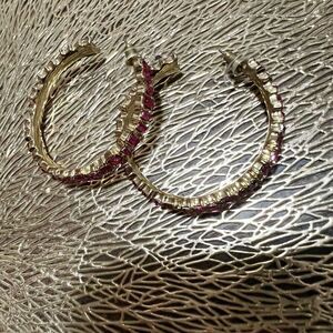 New Hot Pink Baguette Hoops gold plated 1.5 inch