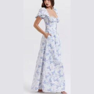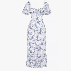 New! House Of CB Felizia Floral Puff Sleeve Maxi Dress Size Large 26982