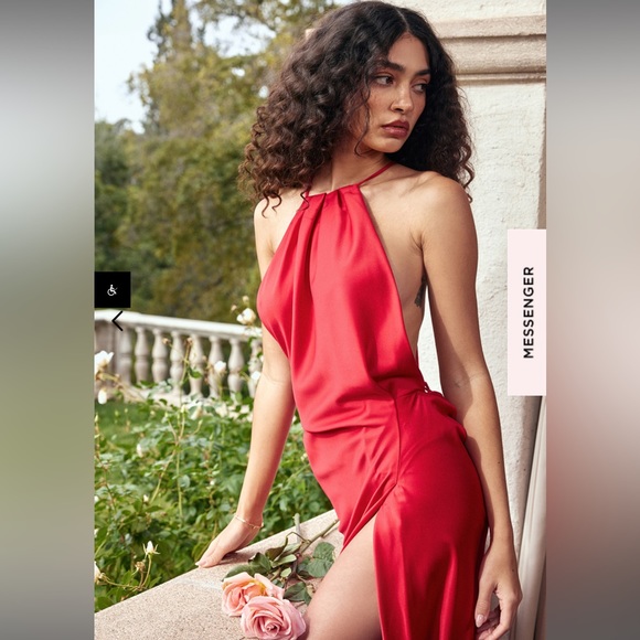 New House of CB ZANAB THIGH SLIT MAXI DRESS size small red rose