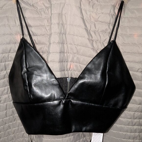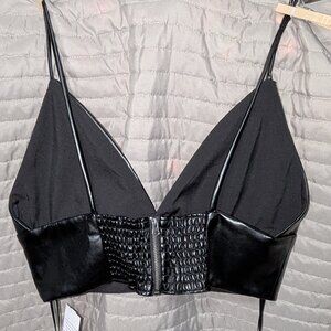 New House of Harlow 1960 Black Vegan Leather Spaghetti Strap Top Size 8