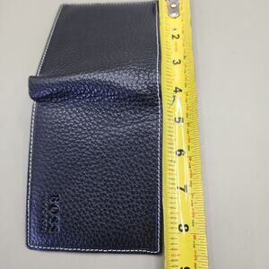 Very well made leather with white stitching. This is a vintage wallet that I've had for several decades. It was a gift I had stored away. It has plenty of compartments including a clear photo ID section and two large main segments for your bills.