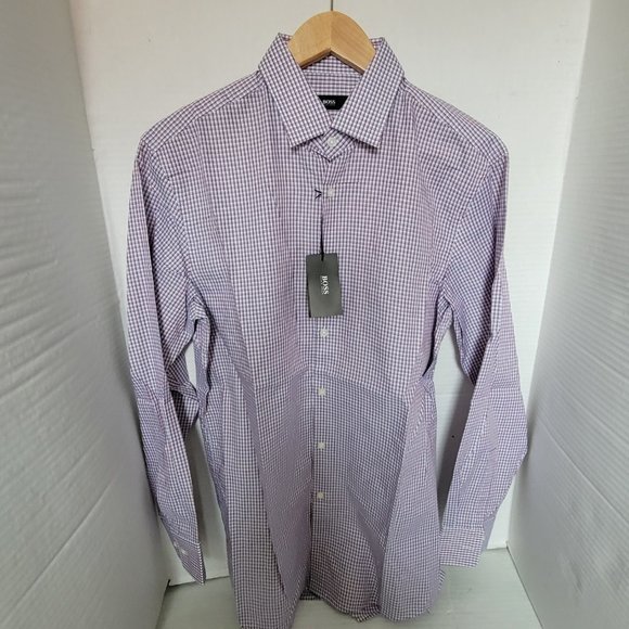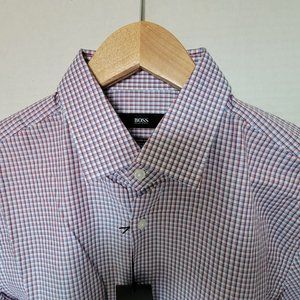 New Hugo Boss Mens Small Check Shirt Button Down Long Sleeve Sharp Fit 15.5 32/3