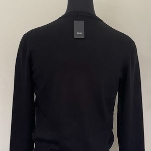 New Hugo Boss Sweater V Neck Black Wool Pullover Sweater S size
