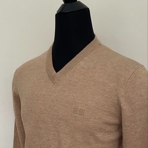 Hugo Boss V neck Beige Camel Virgin Wool Sweater Pullover