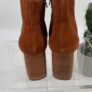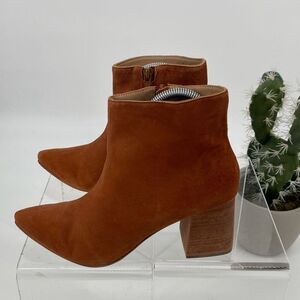 New Huma Blanco Pointed Suede Ankle Booties Side Zip Block Heel.