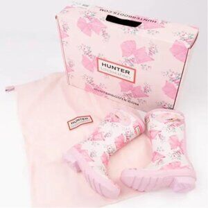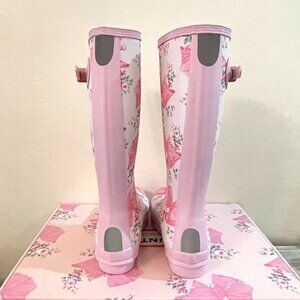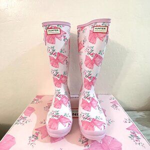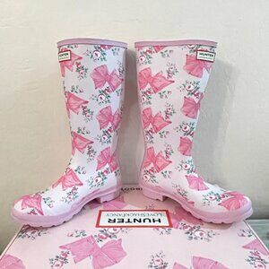 New Hunter X LoveShackFancy Rain Boots Big Kids 5 37 Rosa Beaux Pink Rose Bow