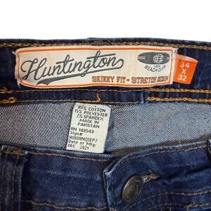 New Huntington BC Jeans Men 34x32 Blue Denim Stretch Zip Fly Mid-Rise Skinny Fit. Please see photos for measurements.