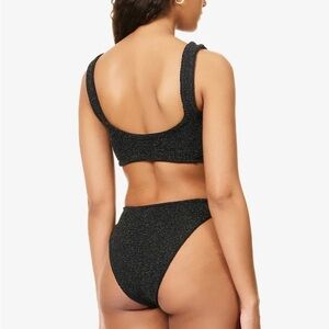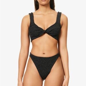 New Hunza G Juno Bikini Set Black & Gold Knotted Crinkle One Size Stretchy Swim
