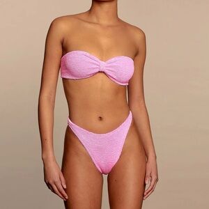 New Hunza G Pink Bikini SET Jean Bandeau Strapless Bubblegum Barbie Crinkle Cute