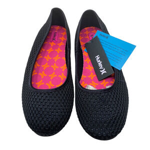 New Hurley Women's Sz 8.5 Jackie Slip Black Mesh Slip On Ballet Flats Loafers