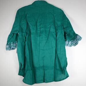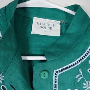 New Hyacinth House Women's XS Green Embroidered Ruffle Linen Montauk Lounge Top