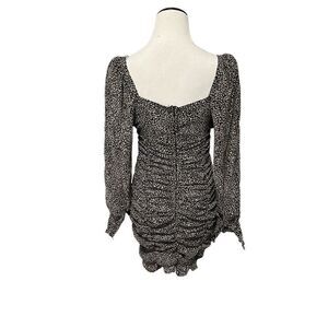 New! Hyfve long sleeve ruched mini-dress with back zip closure and fully lined. Bust 36”, sleeve 24”, length from waist-to-hem 17” and waist is super stretchy. Brand new with no tags attached.