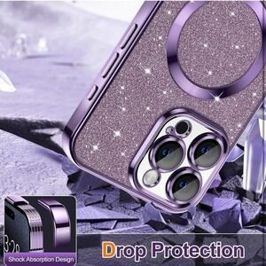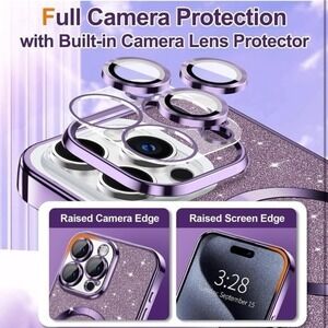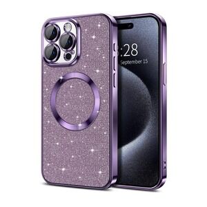 New Hython for iPhone 15 Pro Max Case Glitter, Clear Magnetic Phone Cases with Camera Lens Protector [Compatible with MagSafe] Bling Sparkle Plating Soft TPU Slim Shockproof Protective Cover Women-Purple