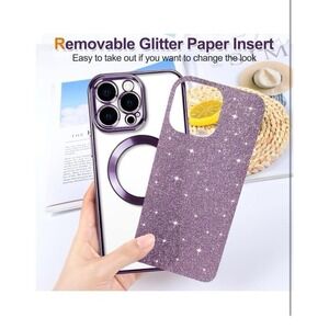 [Clear & Glitter Design]: This sparkle iPhone 15 Pro Max phone case is designed to be clear with a piece of glitter paper; The stunning glittery part can be removed and it is optional to use the glitter paper insert; Very easy to take out if you want to change the look; You can also decorate th