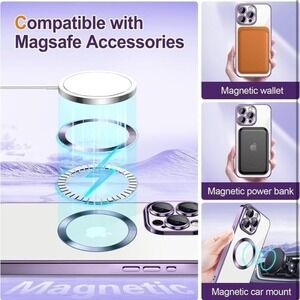 [Compatible with MagSafe Accessories]: This luxury magnetic iPhone 15 Pro Max case has a built-in metallic ring for stable adsorption; Works great with a power bank, wallet, magnetic car mount, wireless charger, and phone ring holder; Strong magnetic power, won't fall easily