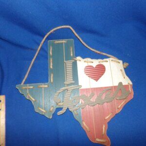 New! I Love Heart Texas Wall Hanging Decoration Sign-Particle Wood, Rope, Metal