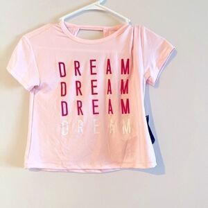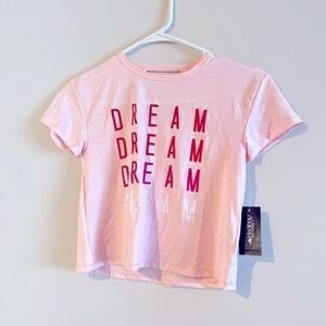 Junior top dream soft Pink shirt size 10/12 She will 'Dream' big in style with the cool stacked print and fashionable open back of this soft T-shirt by Ideology.