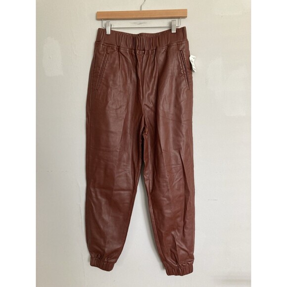 New INC Faux Leather Jogger Pants MEDIUM Cognac Brown Urban Boho