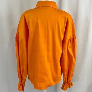 Styles Contemporary Unique Flair Luxe Looks Work Office Business Casual Daytime Versatile Dress Up or Down Going Out Tops Weekend Wardrobe Casual Shirts Statement Sleeves Puff Sleeve Voluminous Vibrant Colorful Orange Shirt