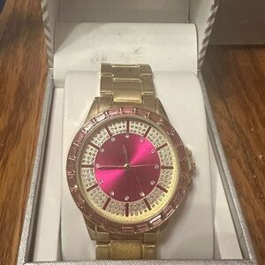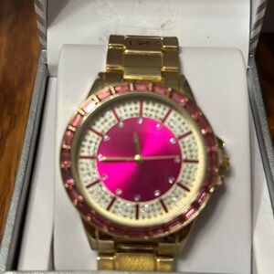New INC Gold Tone Stainless Pink Dial Women's Watch in Box