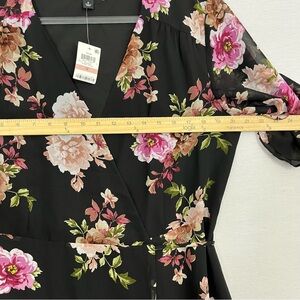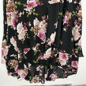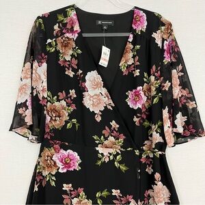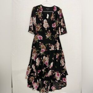 New INC International Concepts Black Multi Floral High Low Faux Wrap Dress sz 12